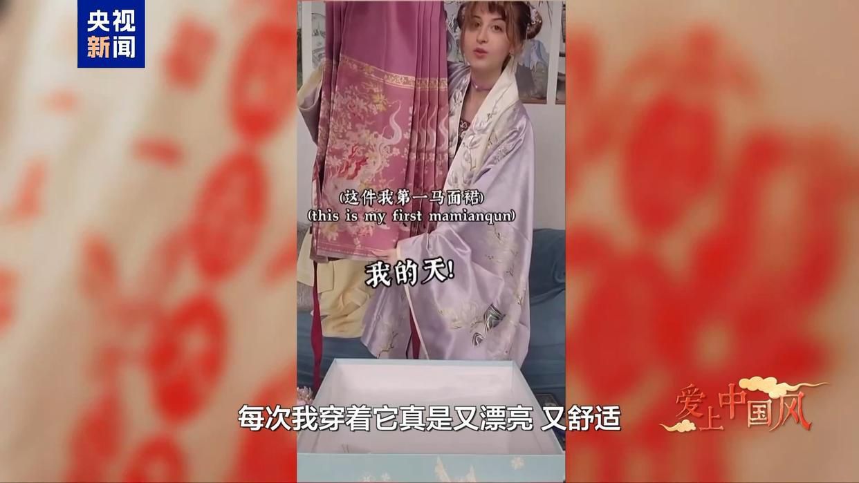 2022年,瑞秋得到了自己第一件漢服。瑞秋說(shuō),到現(xiàn)在還清晰記得第一次穿上漢服的感覺(jué)。