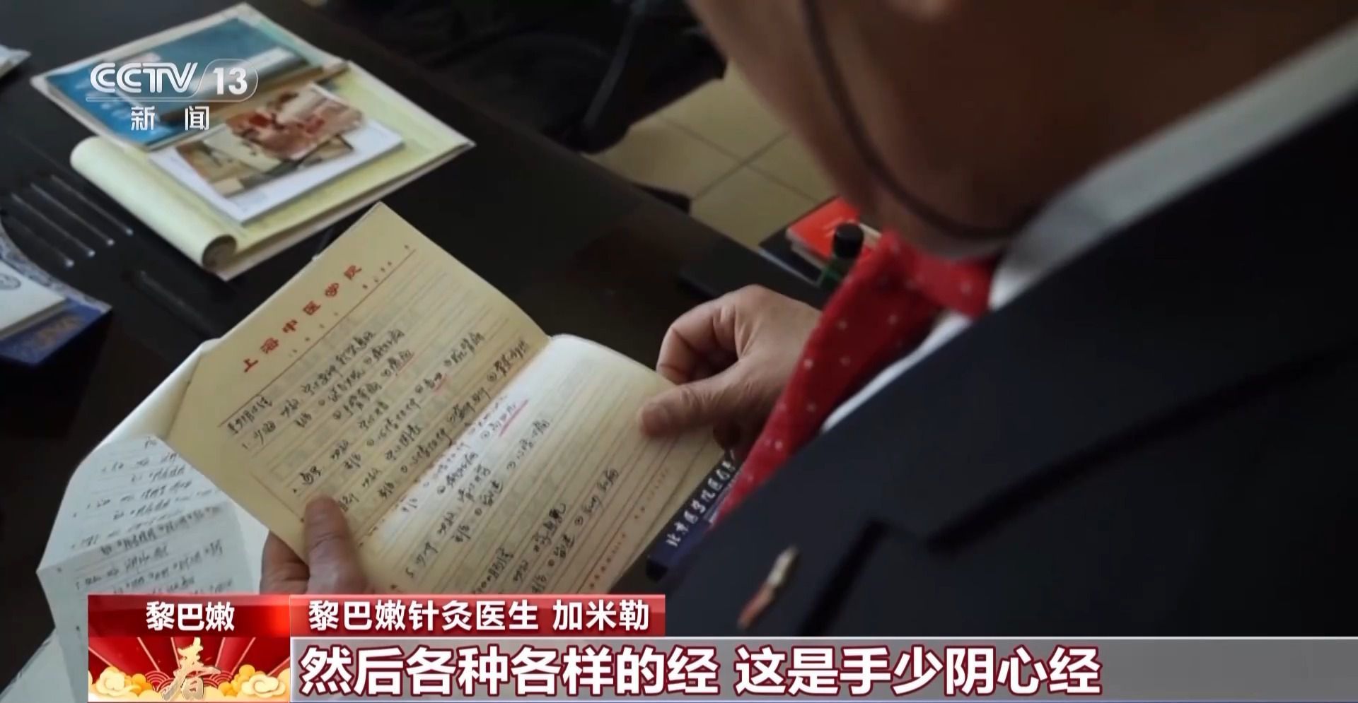 黎巴嫩針灸醫(yī)生 加米勒:第一針永遠(yuǎn)先扎自己,為什么?為了能感受人家有什么感覺。這是我的名字加米勒,這個是筆記本。我告訴你要學(xué)針灸,必須用中文,因?yàn)槊恳粋€穴位有一個意思,這個意思代表能治什么。太陽膀胱經(jīng),這個是足太陽膀胱經(jīng),然后各種各樣的經(jīng),這是手少陰心經(jīng)。在學(xué)習(xí)文化的同時,也能讓我更了解中國文化的根。