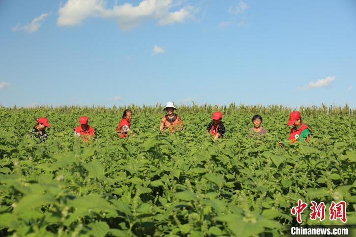 村民正在采摘紫蘇葉。(資料圖) 永吉縣委宣傳部供圖