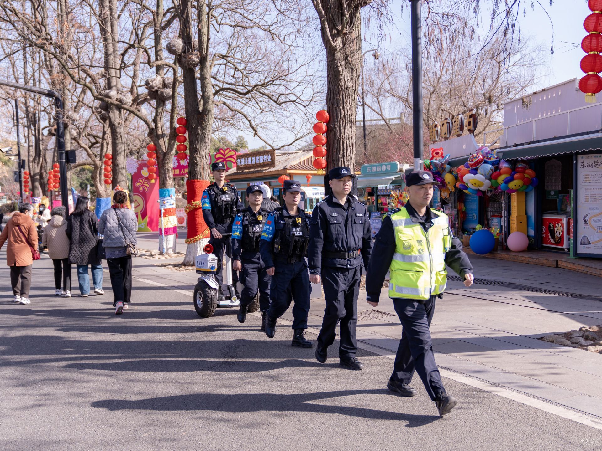 東湖風景區公安分局在東湖梅花園、武漢歡樂谷等文旅活動現場周邊設置37個安保執勤崗,采取“步巡+車巡”“定崗+流動崗”相結合的靈活巡邏方式,真正做到“警力跟著游客走”,全方位守護游客安全。