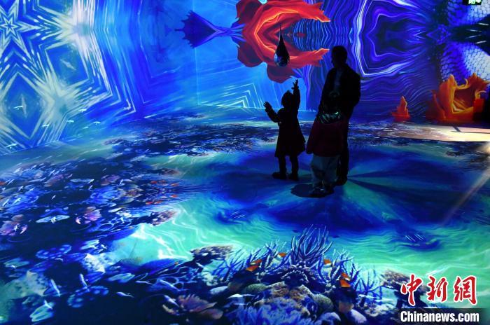 中新網福州2月5日電 (葉秋云)“媽媽,這只海豚在撞墻,墻碎了”“哇,這個是日出嗎”“我要站這里,幫我和水母合個影”……5日,在福建福州市三坊七巷歷史文化街區,“無限之?!两紸I數字藝術展(福州站)”在此舉行,前來體驗的游客絡繹不絕。
