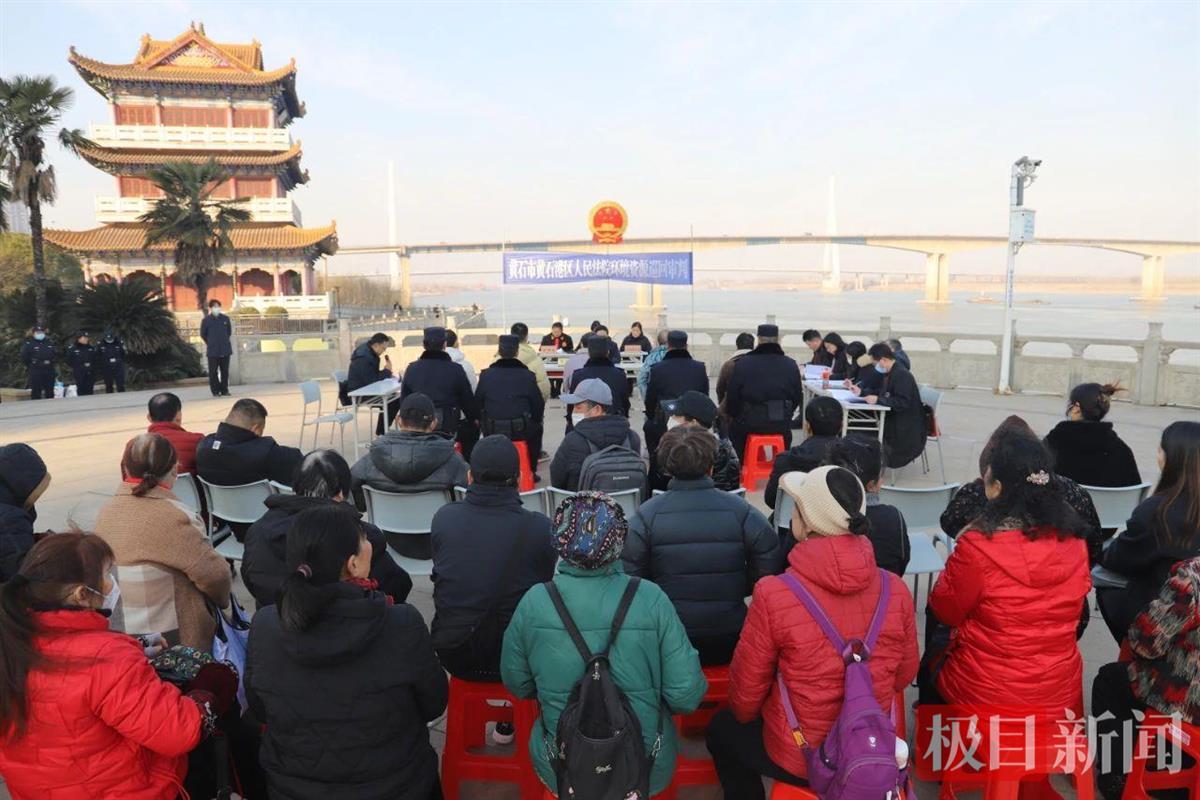 近日,由湖北省黃石市黃石港區檢察院提起公訴和刑事附帶民事公益訴訟的一起非法捕撈水產品案在長江邊的黃石江灘公園內開庭審理,該院依法派員出席支持公訴。活動現場,漁政執法人員、社區居民以及“益心為公”志愿者等30余人前來旁聽觀摩。
