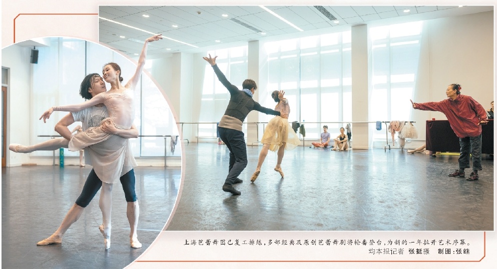 上海芭蕾舞團已復工排練,多部經典及原創芭蕾舞劇將輪番登臺,為新的一年拉開藝術序幕。本報記者 張挺 攝 制圖:張繼