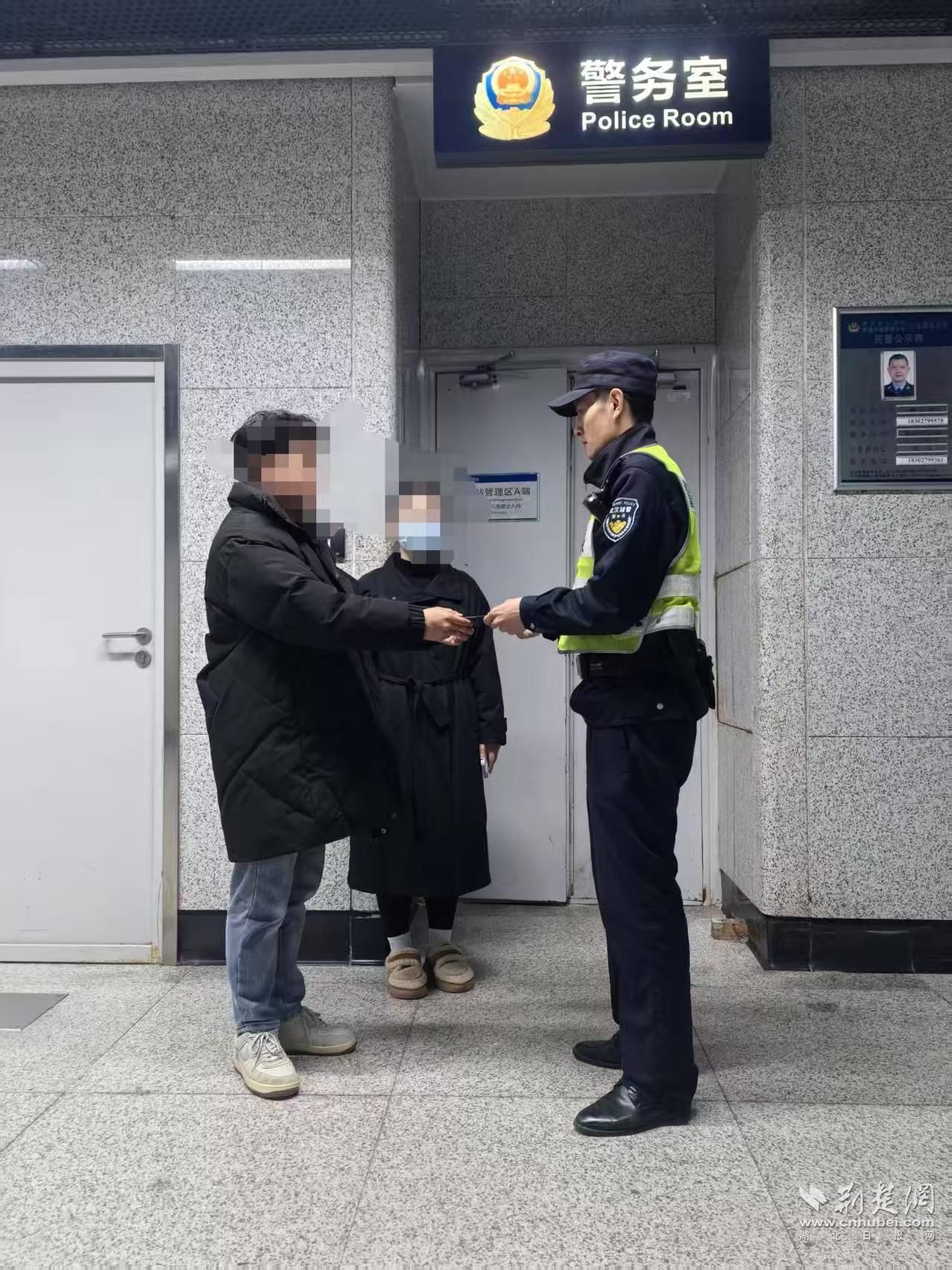 2025年2月6日18時許,返回武漢的該女士將撿到的手機送到沌陽大道站警務室。20時許,汪女士與朋友來到沌陽大道站警務室,失主從警務人員手中接過失而復得的手機,激動地道謝:“這個新年因為你們的幫助,變得格外溫暖!”