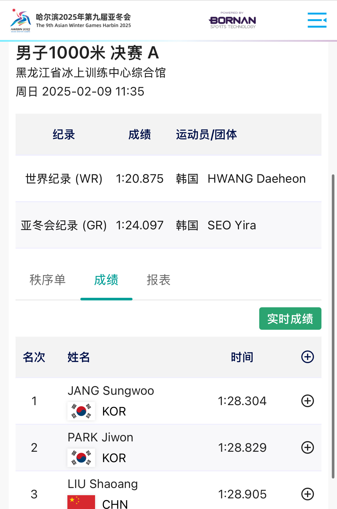 中新網(wǎng)哈爾濱2月9日電(記者 國璇)在9日于黑龍江省冰上訓(xùn)練中心綜合館舉行的哈爾濱亞冬會短道速滑男子1000米A組決賽中,中國選手劉少昂以1分28秒905的成績獲得銅牌。冠亞軍由兩位韓國選手包攬。中國選手孫龍在沖刺階段意外摔倒無緣領(lǐng)獎臺。