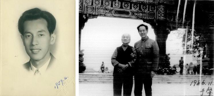 這是一張拼版照片:左圖為1957年春拍攝的黃旭華;右圖為1986年冬拍攝的黃旭華與母親的合影。新華社發