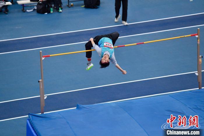 10日上午,34歲的中國跳高名將張國偉在2025年全國室內田徑大獎賽成都站男子跳高項目比賽中。 記者 張浪 攝