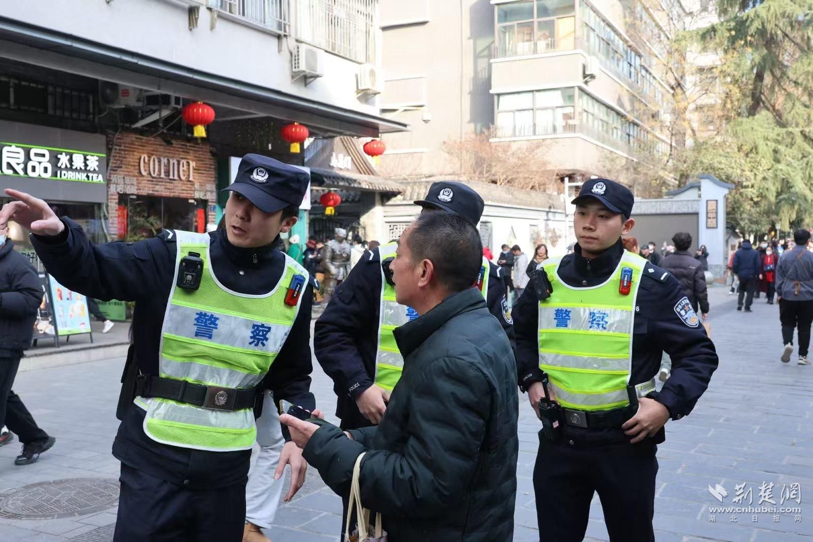 圍繞夜上黃鶴樓、曇華林集市、武商夢時代等熱門景點、超大商圈,武昌區公安分局提前組織警力開展安全隱患排查,按照“一活動、一方案、一專班”標準,強化警力配置,細化安全措施,提升服務水平。針對曇華林城墻集市和夜間賞燈活動現場,轄區派出所積極對接景區,調動“黃鶴衛士”參與安保,讓市民和游客在欣賞美景、品嘗美食的同時,感受滿滿的安全感。