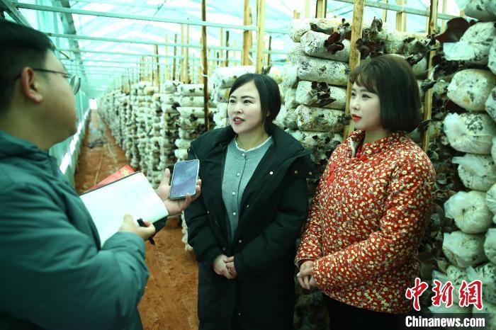 2月9日,中新社“新春走基層”采訪報道組一行走進江西廣昌一木耳種植基地。圖為基地負責人劉翠和劉萍接受記者采訪。記者 劉占昆 攝