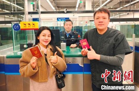 一對泰國情侶點贊皇崗邊檢站高效服務。皇崗邊檢站供圖