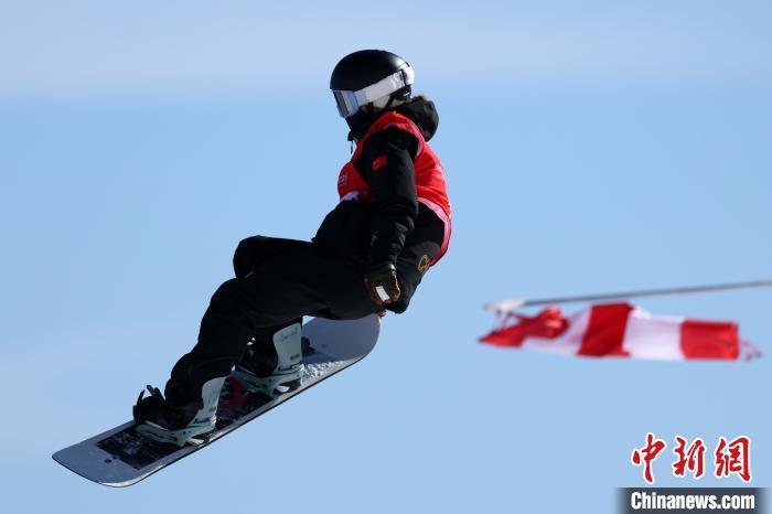 2月10日,在哈爾濱亞冬會單板滑雪女子大跳臺決賽中,中國選手熊詩芮摘得金牌。圖為熊詩芮在比賽中。 中新社記者 富田 攝