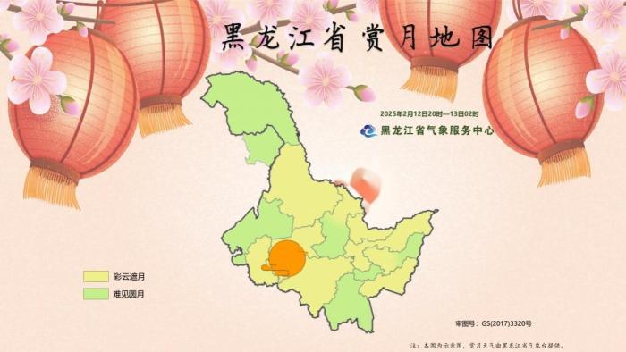2025年黑龍江省“元宵節”賞月地圖(2025年2月12日20時至13日2時)?!『邶埥庀缶止﹫D
