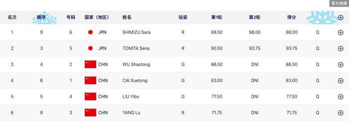 中新網哈爾濱2月12日電(記者 郭超凱 岳川)在12日舉行的哈爾濱亞冬會單板滑雪女子U型場地技巧預賽中,中國滑雪名將蔡雪桐亮相,以83.00的成績排名第四。日本小將清水笑良、北京冬奧會銅牌得主富田瀨奈憑借出色表現,分獲第一、第二名。另一位中國選手武紹桐排名第三。按賽程計劃,單板滑雪女子U型場地技巧決賽將在2月13日打響。