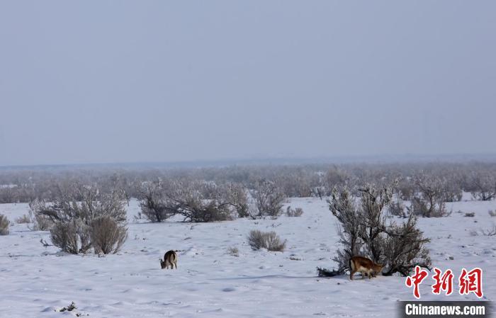 近日,護(hù)林員王偉踏著厚厚的積雪,與同事們行走在公益林腹地,為沙漠中的野生動物投放草料。