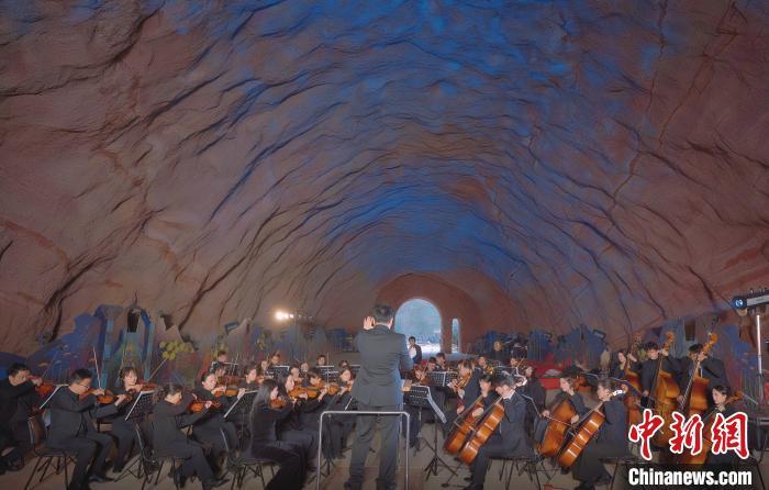 2月12日,江西龜峰景區在鎖春洞景點內上演了一場別開生面的新春交響音樂會。江西龜峰景區 供圖