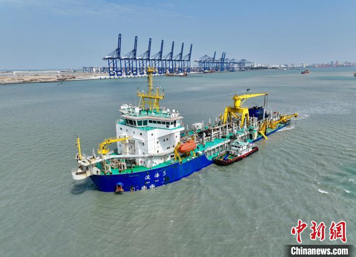 蔣祖聰告訴記者,“浚海5”于去年9月到達洋浦開始生產(chǎn),目標在2025年上半年將航道水深由不到10米挖至17.5米,能夠讓全球最大的2.4萬箱位集裝箱船通航靠泊。