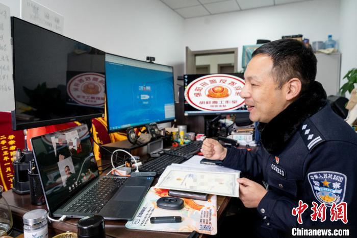 中新網(wǎng)綿陽2月12日電(岳波)2月12日,四川省綿陽市公安局刑偵支隊(duì)一大隊(duì)教導(dǎo)員胡祥雨早早地來到了自己的工作室:調(diào)試設(shè)備、組建團(tuán)圓群、打印身份確認(rèn)通知書……上午10點(diǎn)整,綿陽公安新年的第一場視頻團(tuán)圓認(rèn)親活動(dòng)準(zhǔn)時(shí)開始,在胡祥雨的幫助和見證下,家住廣東省惠東縣的小錢(化名)與生活在重慶市萬州區(qū)的母親通過網(wǎng)絡(luò)視頻連線,在元宵節(jié)這一天實(shí)現(xiàn)團(tuán)圓。