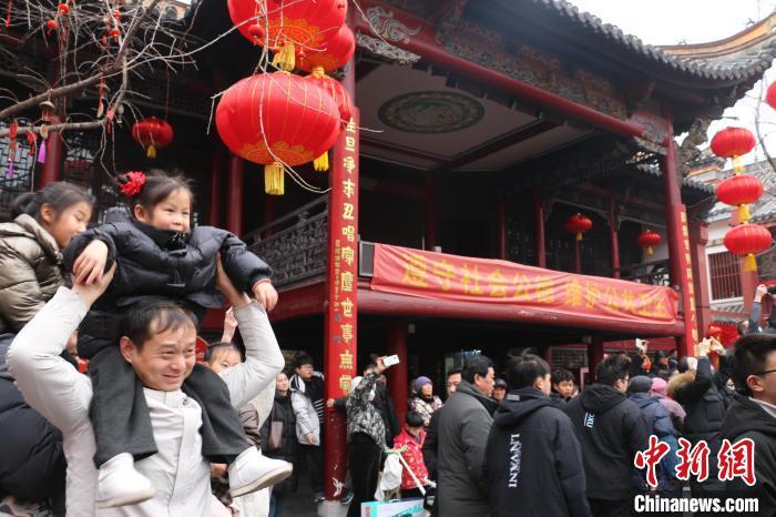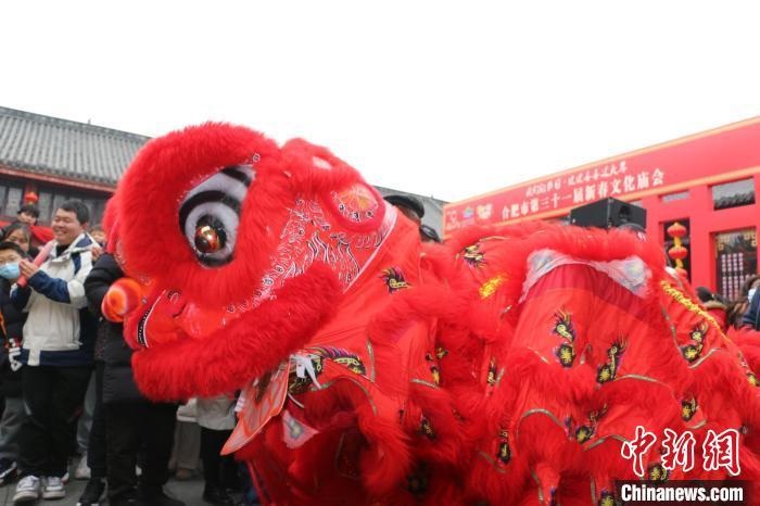 2月12日,合肥市民在廬州府城隍廟大院圍觀舞獅表演。朱孔陽 攝