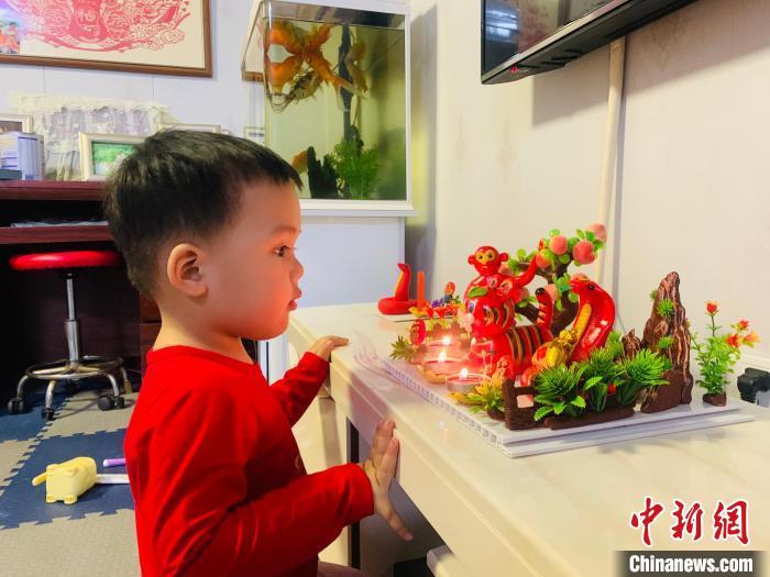 圖為兒童在屬相燈前許愿。楊毅 攝