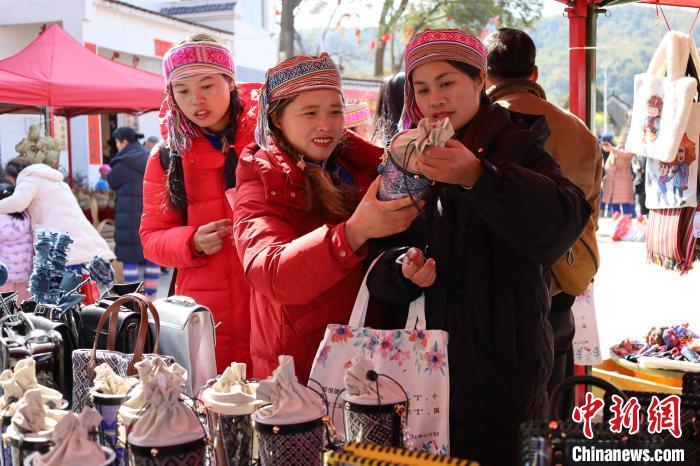 春節期間,富川瑤族自治縣還舉辦了2025年瑤族花炮節暨非遺大集市系列活動。非遺集市上,展出的瑤族織錦、瑤族銀飾、手工編織產品、瑤族牙尖藤茶等產品,受到了游客的青睞。