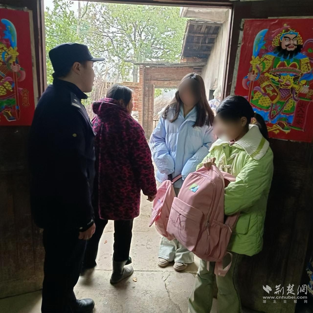 2月9日,開學前夕,武漢新洲區潘塘街羅楊村嚴氏姐妹家中暖意融融,潘塘派出所副所長童磊帶著米油、書包文具等物資登門慰問這對事實無人撫養的姐妹。“知識能改變命運,警察叔叔和你們一起加油!”作為分局“護苗行動”結對幫扶對象,童磊定期上門輔導課業、疏導心理。嚴家姐姐摸著新書包眼眶發紅:“我們一定更加努力學習,不辜負您的期望。”