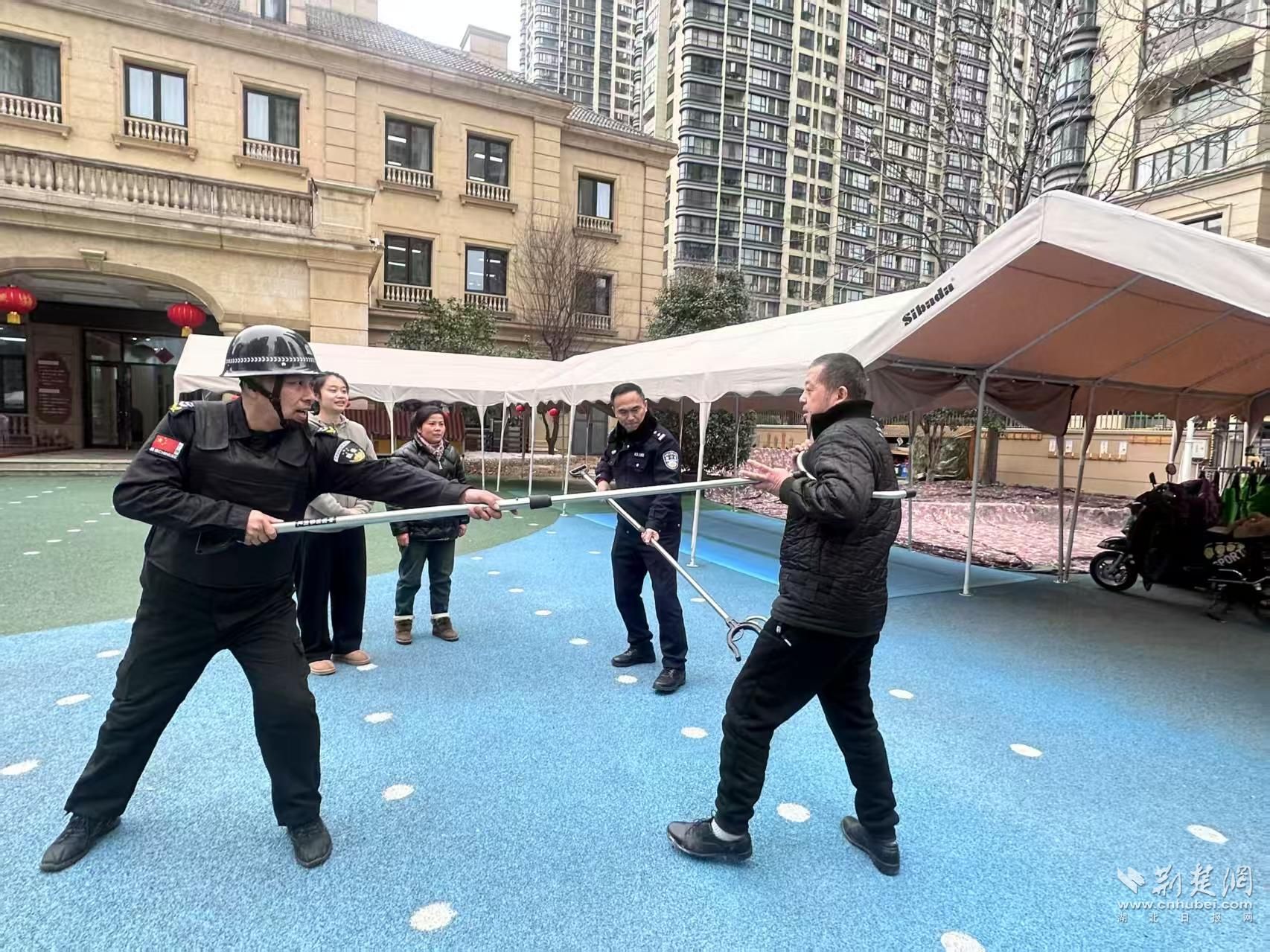 “快按一鍵報警,封鎖大門。”2月11日,東亭所民警蔣文平在轄區幼兒園指導學校老師和保安進行應急演練,現場演示了如何應對暴力沖擊校園的防范要領。