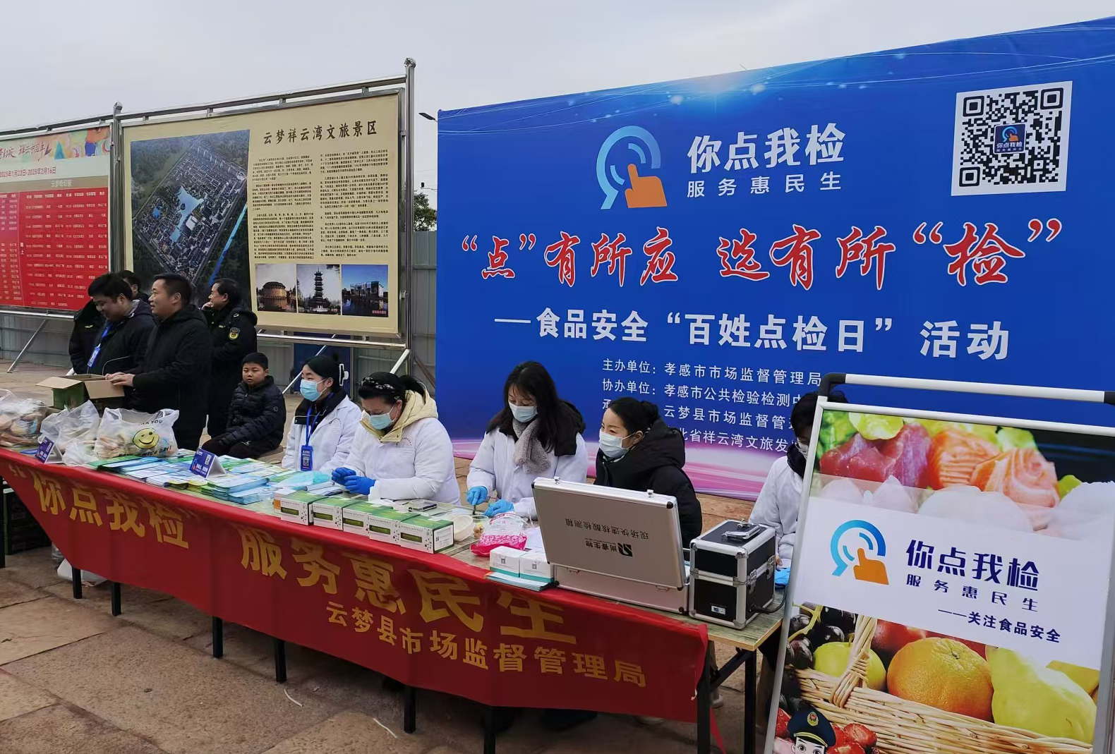 活動(dòng)現(xiàn)場(chǎng)設(shè)有“你點(diǎn)我檢 服務(wù)惠民生”民意征集系統(tǒng)推廣區(qū)、科普宣傳與咨詢區(qū)、以及“你送我檢”和結(jié)果反饋區(qū),工作人員向消費(fèi)者宣傳食品安全知識(shí)和相關(guān)法律法規(guī),解答關(guān)于食品安全方面疑問。同時(shí),邀請(qǐng)現(xiàn)場(chǎng)群眾掃描“你點(diǎn)我檢”二維碼進(jìn)行線上點(diǎn)選,征集消費(fèi)者關(guān)心關(guān)注的食品品種、檢驗(yàn)項(xiàng)目及抽樣場(chǎng)所等,讓消費(fèi)者成為食品安全檢測(cè)的“點(diǎn)單者”。活動(dòng)當(dāng)天,共發(fā)放宣傳資料1500余份,接受食品相關(guān)知識(shí)咨詢200余人次,發(fā)放調(diào)查問卷1000余份,參與網(wǎng)絡(luò)點(diǎn)選200余人次,對(duì)消費(fèi)者送檢的120批次食品進(jìn)行農(nóng)殘和獸殘快檢,檢測(cè)結(jié)果均為合格,并當(dāng)場(chǎng)進(jìn)行公布。對(duì)景區(qū)內(nèi)食品經(jīng)營(yíng)戶開展現(xiàn)場(chǎng)檢查,規(guī)范經(jīng)營(yíng)行為。下一步還將對(duì)游客關(guān)注度高的品種進(jìn)行公示,并開展監(jiān)督抽檢。