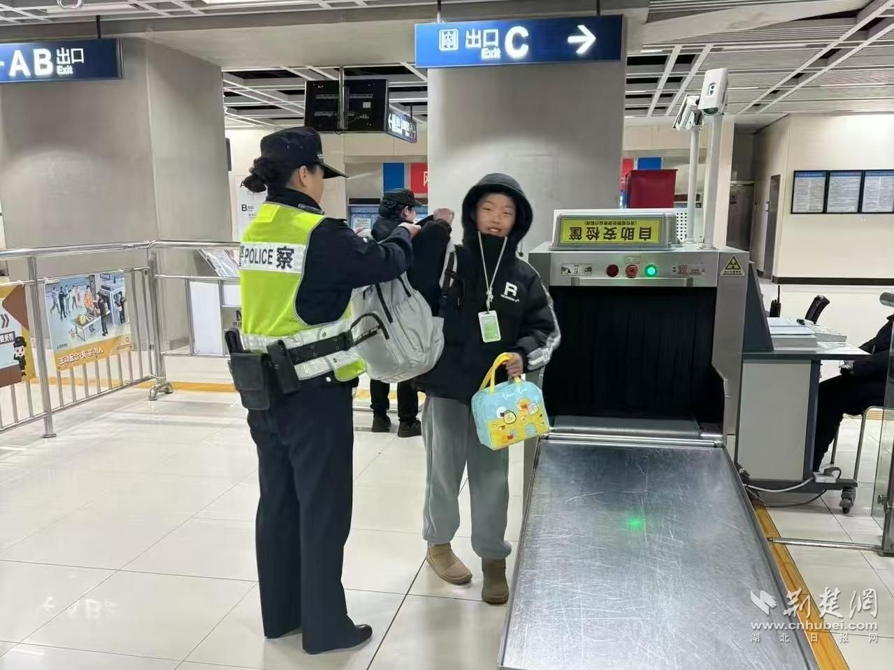 軌道民警為過安檢學生背上書包