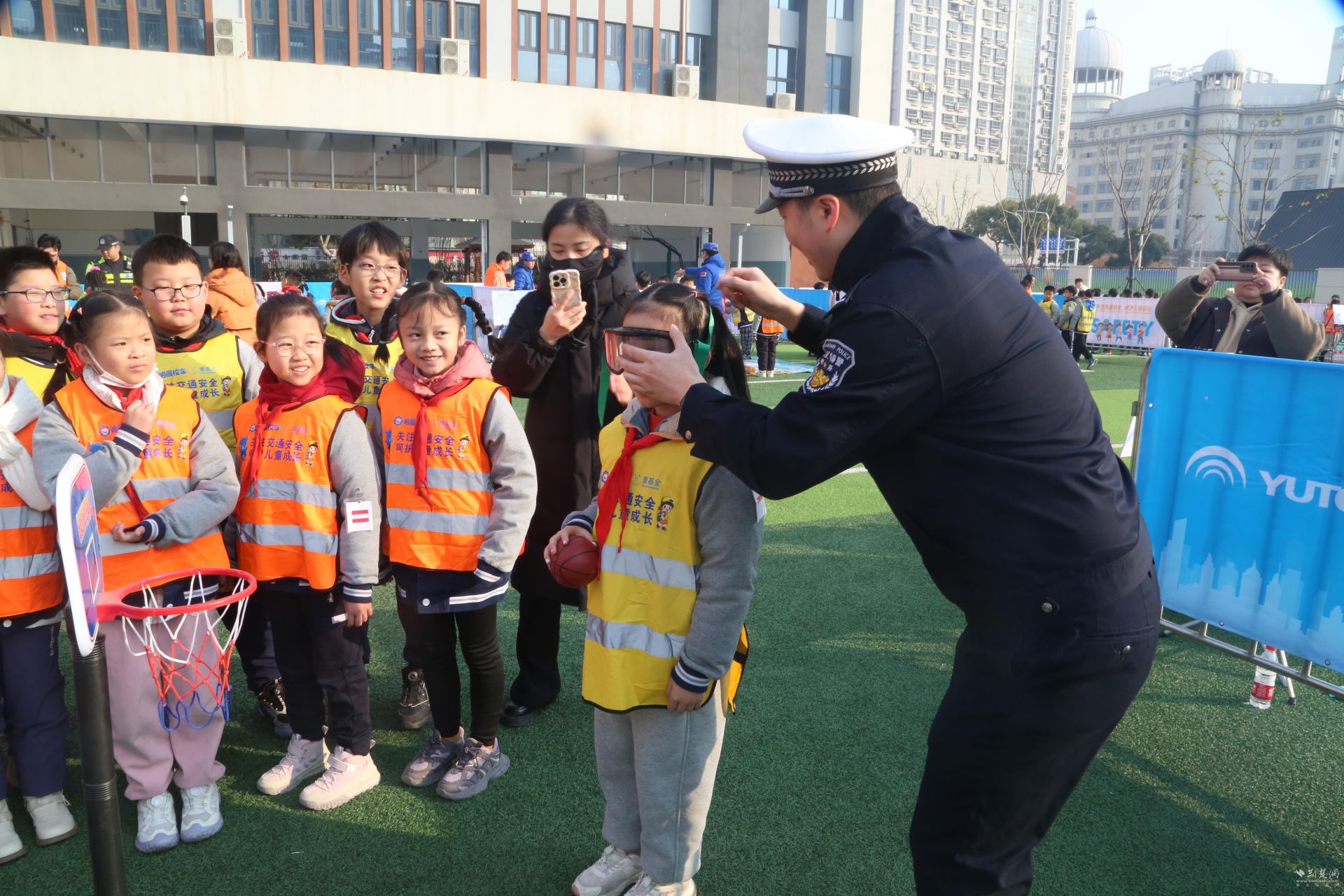 當日學生入校后,民警紛紛走進校園,圍繞交通安全、校園安全防范等內容,開展“入學第一課”教育。漢陽區交通大隊聯合愛心企業在鐘家村小學開展交通安全“春季開學第一課”,300余名師生、家長、志愿者等共同參與活動。演示完雞蛋戴與不戴安全頭盔不同的掉落結果后,老師拿著安全頭盔,笑著問學生:“同學們,誰能告訴我,為什么要戴安全頭盔呀?”聲音未落,可愛的小手便齊刷刷舉起,爭相回答。此外,現場還通過交通安全出行棋、認識大貨車內輪差等趣味活動和動畫視頻,讓師生、家長在輕松氛圍中學習交通安全知識,提高安全意識。
