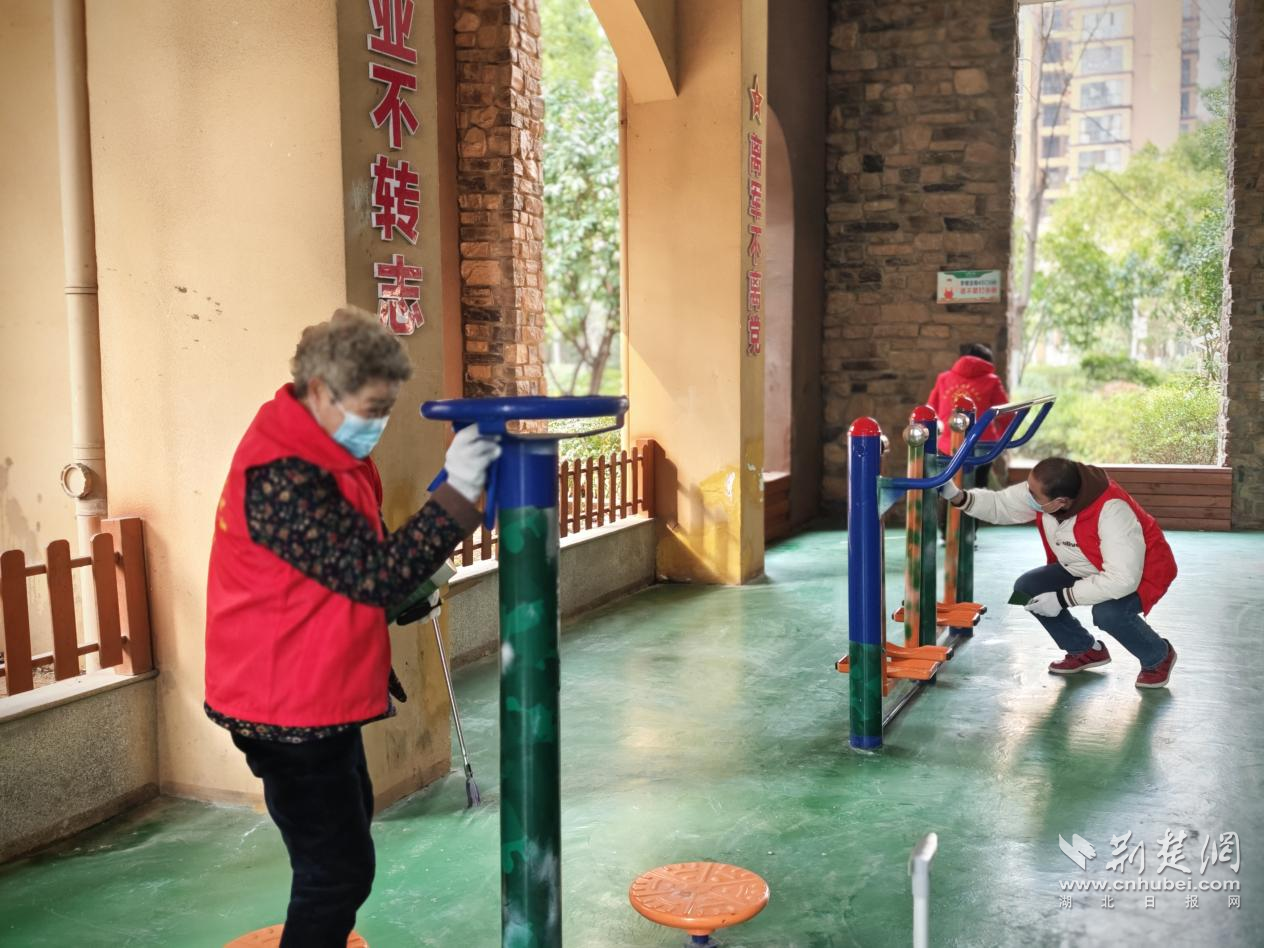 志愿者們在打掃架空層內的運動器械。通訊員供圖