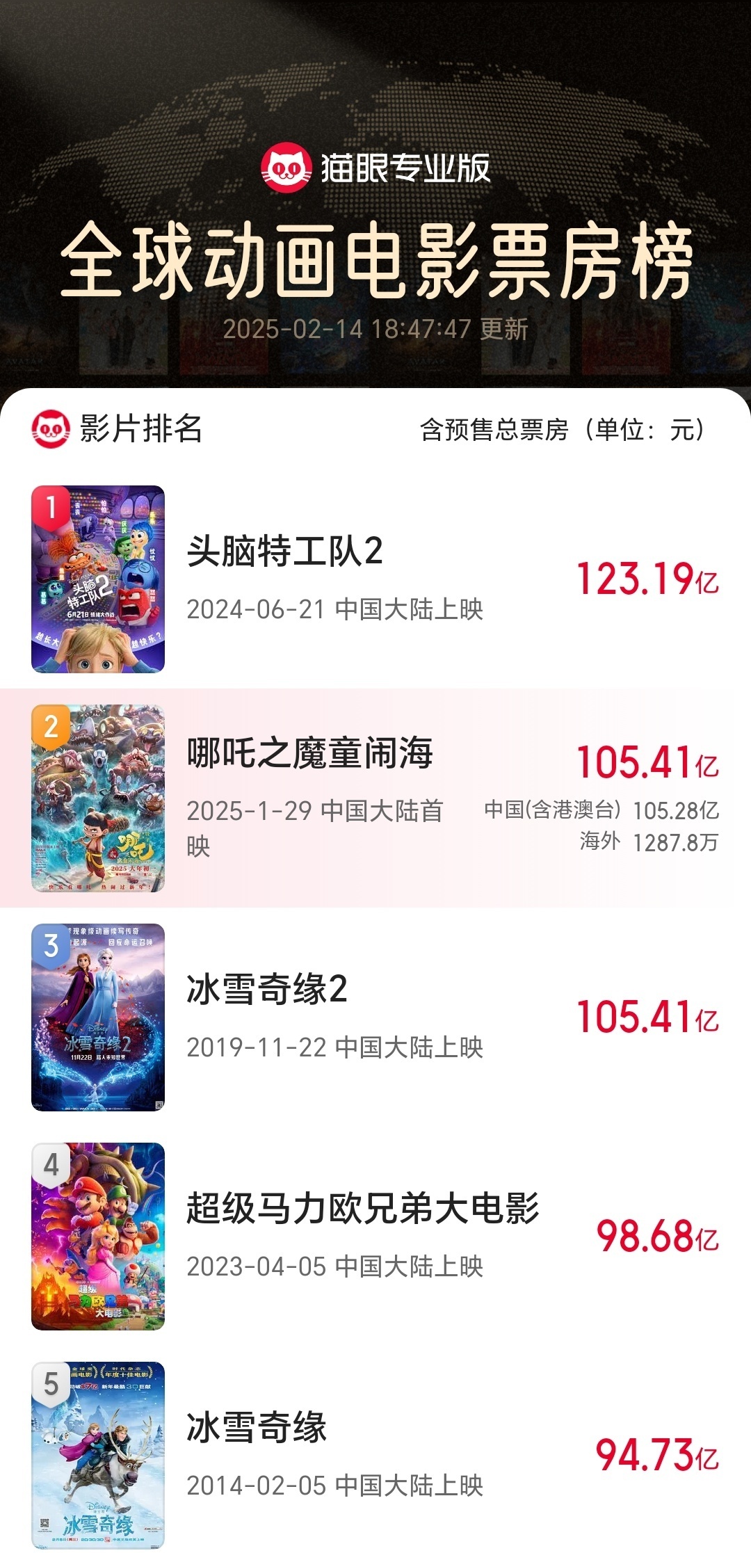 此前《哪吒之魔童鬧海》已連續(xù)創(chuàng)造多項紀錄