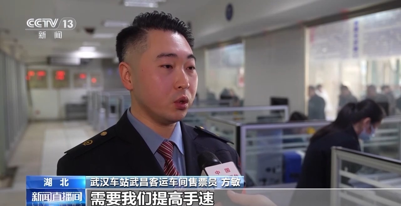 武漢車站武昌客運車間售票員 方敏:很多都是特殊旅客、重點人群、脫網旅客,這個時候不光要手速,還要以服務來滿足旅客,讓旅客在旅途中感受到我們的溫暖。