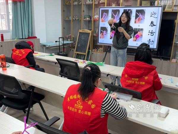 巧手編織共筑情感橋梁。為了讓學員們更深入地體驗節(jié)氣文化,活動特別設置了非遺手工環(huán)節(jié)。志愿者們以“春”為主題,帶領學員們用扭扭棒制作象征春天的花朵。“淡黃色代表迎春花開,嫩綠色象征柳條抽芽”,志愿者們采用分步拆解教學法,“一對一”指導學員挑選彩色扭扭棒,完成繞圈、塑形等步驟。學員們邊學邊做,將課堂所學的節(jié)氣符號轉(zhuǎn)化為一件件充滿春意的藝術(shù)作品,現(xiàn)場歡聲笑語不斷。