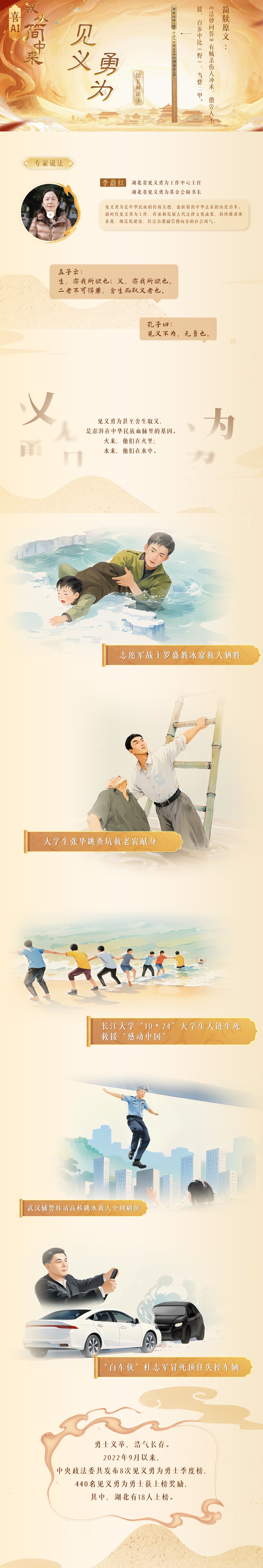 在湖北省見義勇為工作中心主任李蔚紅看來,見義勇為是中華民族的傳統(tǒng)美德,同時也折射出中華法系的歷史沿革,從云夢睡虎地秦簡可以看到,從秦代開始,就通過法律明確了對見義勇為行為的獎賞和對見危不救者的懲罰。