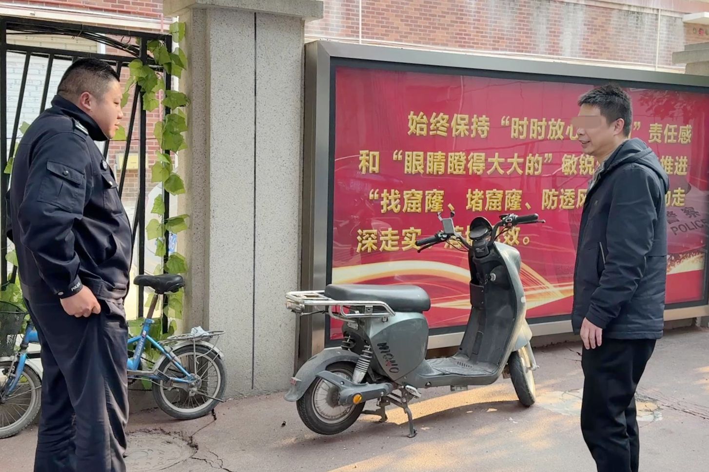 武漢市公安局江岸區分局百步亭派出所民警胡昕、陸虹羽,輔警葉超、胡可調取多處視頻,逐幀篩查后發現端倪,一名身著咖啡色棉服的老年男子騎走了萬先生的電動車。