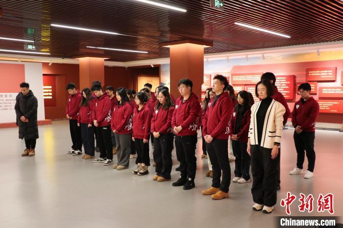 港生在東北淪陷史陳列館為抗聯(lián)烈士默哀獻(xiàn)花。主辦方供圖