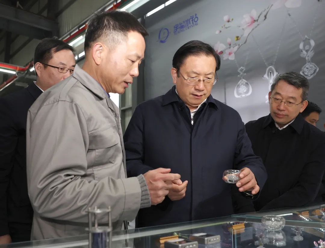 位于黃梅縣的湖北宇星水鉆飾品有限公司,專注水鉆飾品行業,擁有各類專利60多項,是國家高新技術企業、制造業單項冠軍。王忠林認真聽取企業產品研發、市場開發、生產經營等介紹,走進車間察看企業水晶鉆石生產線技改升級情況,鼓勵企業深度開展產學研合作,進一步推動技術改造和研發成果轉化,不斷優化產品結構,提升市場競爭力。