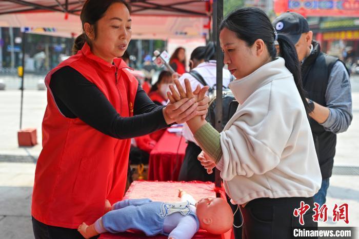 求職者在展臺了解母嬰護理技能。記者 陳驥旻攝