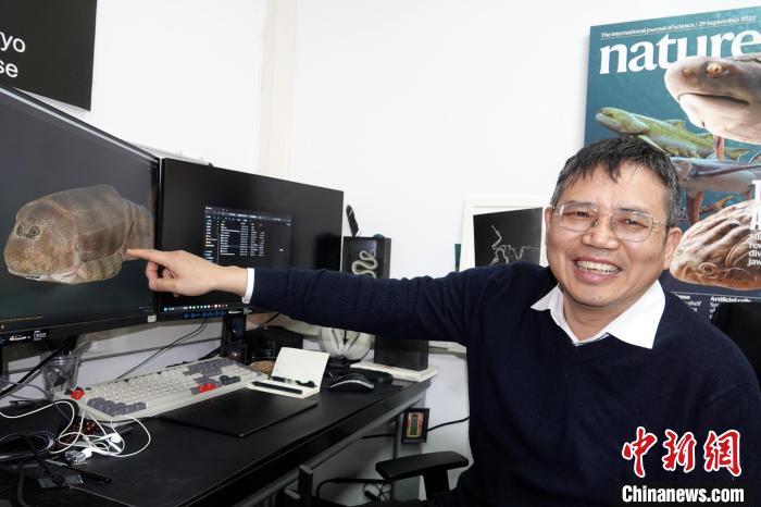2月21日,朱敏院士介紹正在繪制中的“珠江源溝鱗魚”復原圖。中新網記者 孫自法 攝