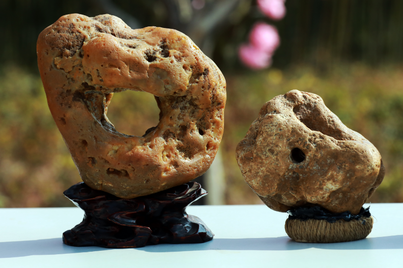 收藏家張銘煥則帶著他的“寶藏”——數十塊穿天石來到現場。他耐心地向圍觀者講述穿天石的故事,讓大家更加了解穿天石所承載的文化內涵。漢江游輪上,園林工程師韓貴祥帶來了別具一格的“穿天石”印章以及“石上盆景”。穿天石在他的巧手下,與綠植相互映襯,宛如一個個精致的微型園林。