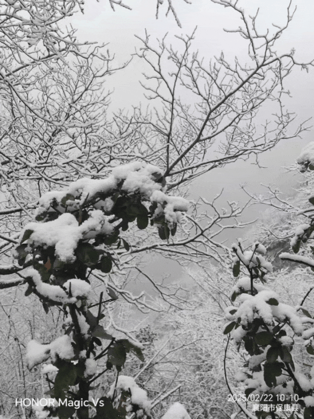 一夜寒云漫保康,瓊花簌簌覆山鄉。