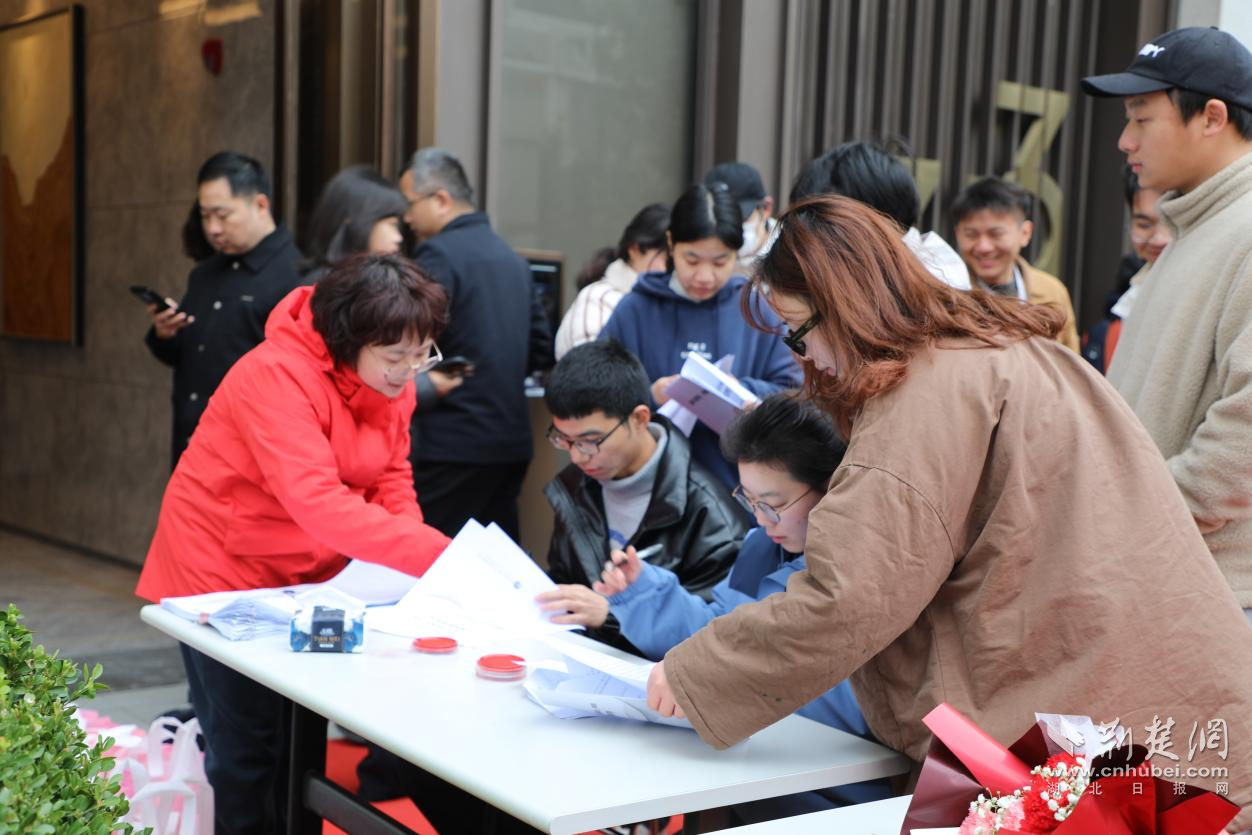 荊楚網(湖北日報網)訊(通訊員 楊甜、趙志榮、趙前潤)2月21日,武漢經開產投集團第4代人才公寓經開·友+公寓(印湖云著店)舉行鑰匙交付儀式,首批入住青年人才代表現場領鑰入住。來自東風研發總院、東風乘用車、美的集團等近百名青年人才在現場參觀了精裝人才公寓后,超8成當場簽下租房合同。印湖云著店80套精裝人才公寓交付當天即實現滿租。