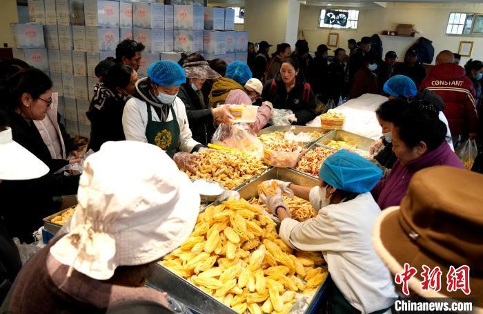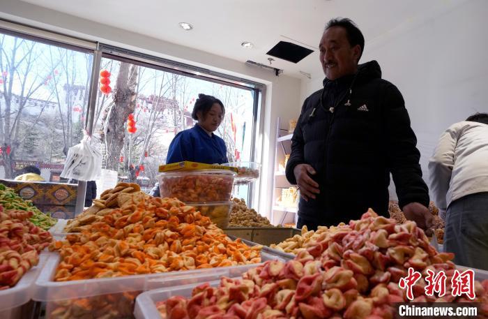 中新網拉薩2月24日電(李林)24日,藏歷木蛇新年即將到來,市民在西藏拉薩街頭挑選年貨卡塞。