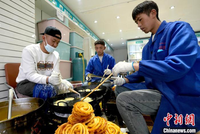 卡塞是一種油炸面食,是藏歷新年必備的年貨之一。在西藏拉薩市城關區林廓北路等路段,沿街不少商店都在制作、售賣卡塞。工人將和好的面切片,捏出條形、方形、蝴蝶形等不同形狀,在油鍋里炸至金黃。隨后再撒上白糖,整齊擺放。陣陣香味,吸引著市民前來選購。(完)