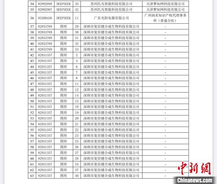 中新網北京2月24日電 (記者 孫自法)中國國家知識產權局2月24日通過官方網絡平臺發布通告,依法駁回惡意搶注“DEEPSEEK”等63件相關商標注冊申請。