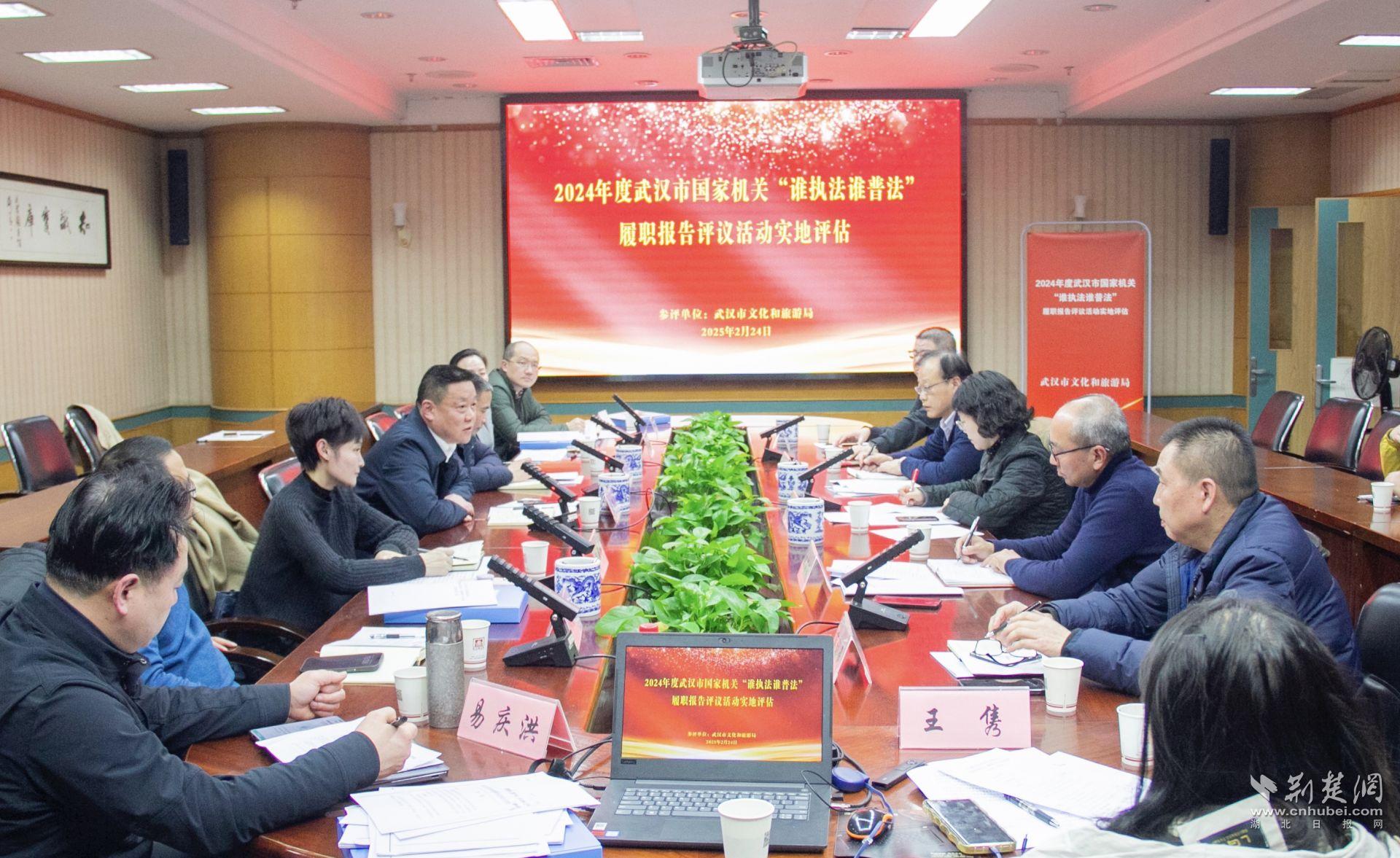武漢市文化和旅游局市場綜合執法支隊、武漢市圖書館、武漢說唱團有關負責人分別匯報了本單位2024年普法工作情況。評議團成員結合現場匯報情況,指出了普法工作中的亮點和不足,并提出合理化、個性化工作建議。