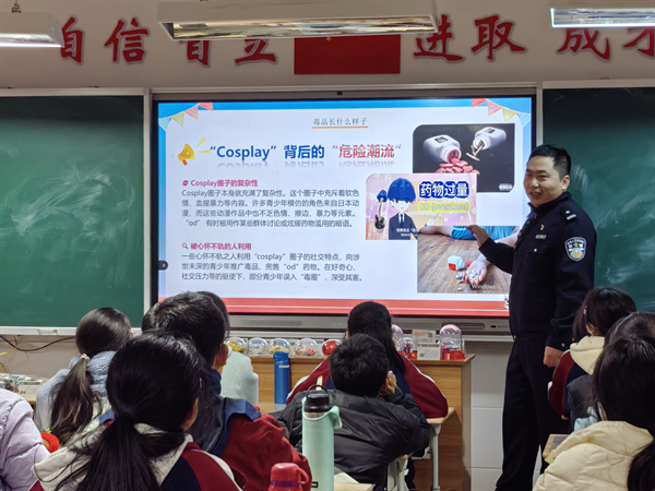 “Cosplay圈子本身就充滿復(fù)雜性,許多青少年模仿的角色來自日本動(dòng)漫,而這些動(dòng)漫作品中也不乏色情、擦邊、暴力等元素?!被顒?dòng)現(xiàn)場(chǎng),禁毒大隊(duì)陳警官以“毒品是什么”為切入點(diǎn)展開教學(xué),同學(xué)們通過PPT直觀地了解毒品的各種形態(tài),對(duì)傳統(tǒng)和新型毒品的認(rèn)知不再停留在模糊的概念上。在“怎么區(qū)分藥和毒”環(huán)節(jié),陳警官結(jié)合生活實(shí)例,詳細(xì)介紹了兩者的區(qū)別,告誡同學(xué)們要嚴(yán)格遵醫(yī)囑用藥,切勿濫用藥品,避免因無知而陷入毒品的陷阱。