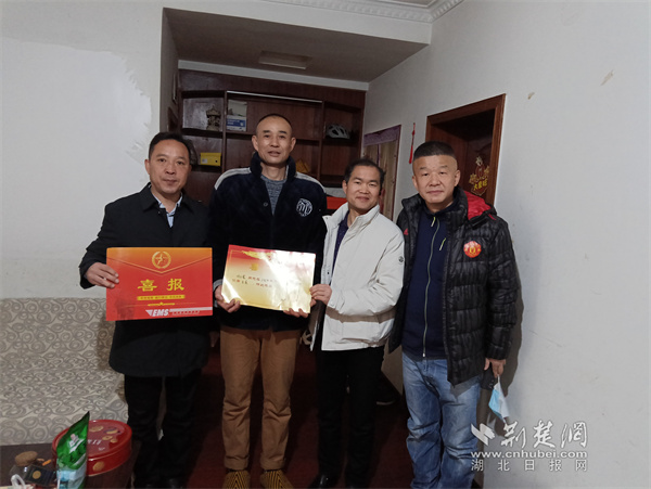 工作人員把喜報送到現役軍人葉立豪家中。 通訊員供圖