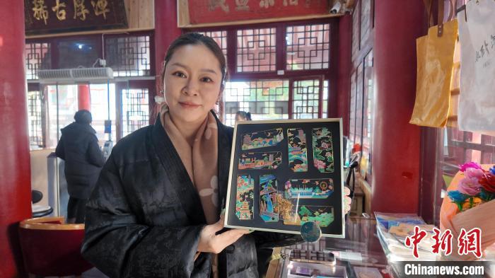 2月24日,婁鳳在三河民俗博物館向記者展示其開發的文創產品。 中新社記者 趙強 攝