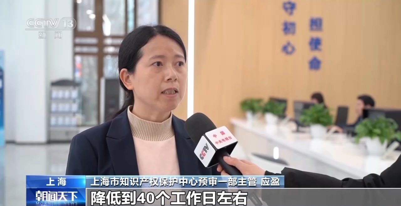 上海市知識產權保護中心預審一部主管 應盈:專利預審服務可以幫助企業更快獲得專利授權,平均周期可以從接近20個月降低到40個工作日左右。